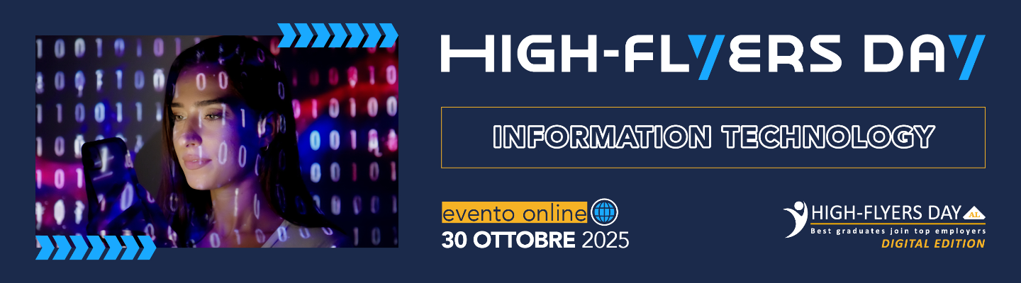 Giovedì 30 Ottobre si terrà High-Flyers Day - Information Technology, dedicato a chi ha conseguito o sta per conseguire una laurea in Informatica, Ingegneria Informatica, Matematica, Fisica, e Statistica.